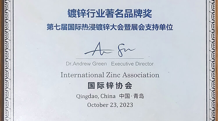 鍍鋅行業(yè)著名品牌獎